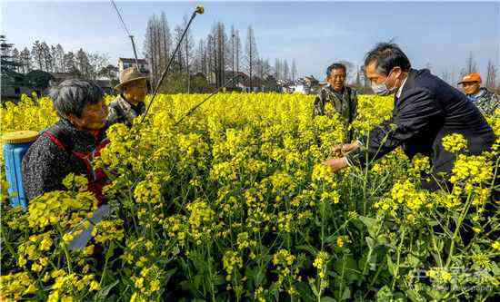 3月14日,廬江縣同大鎮(zhèn)紅埂村的農(nóng)田里,農(nóng)民們正在農(nóng)技人員的指導(dǎo)下給油菜噴灑農(nóng)藥及硼肥預(yù)防菌核病。只聽(tīng)鎮(zhèn)農(nóng)技站高級(jí)農(nóng)藝師許德穩(wěn)在對(duì)幾位農(nóng)民群眾耐心科普:“目前油菜已進(jìn)入花期,少的已進(jìn)入盛花期,現(xiàn)在要抓好防治油菜菌核病為重點(diǎn)的后期管理,根據(jù)病情測(cè)報(bào)和天氣情況,今年的油菜菌核病為中等偏重……”