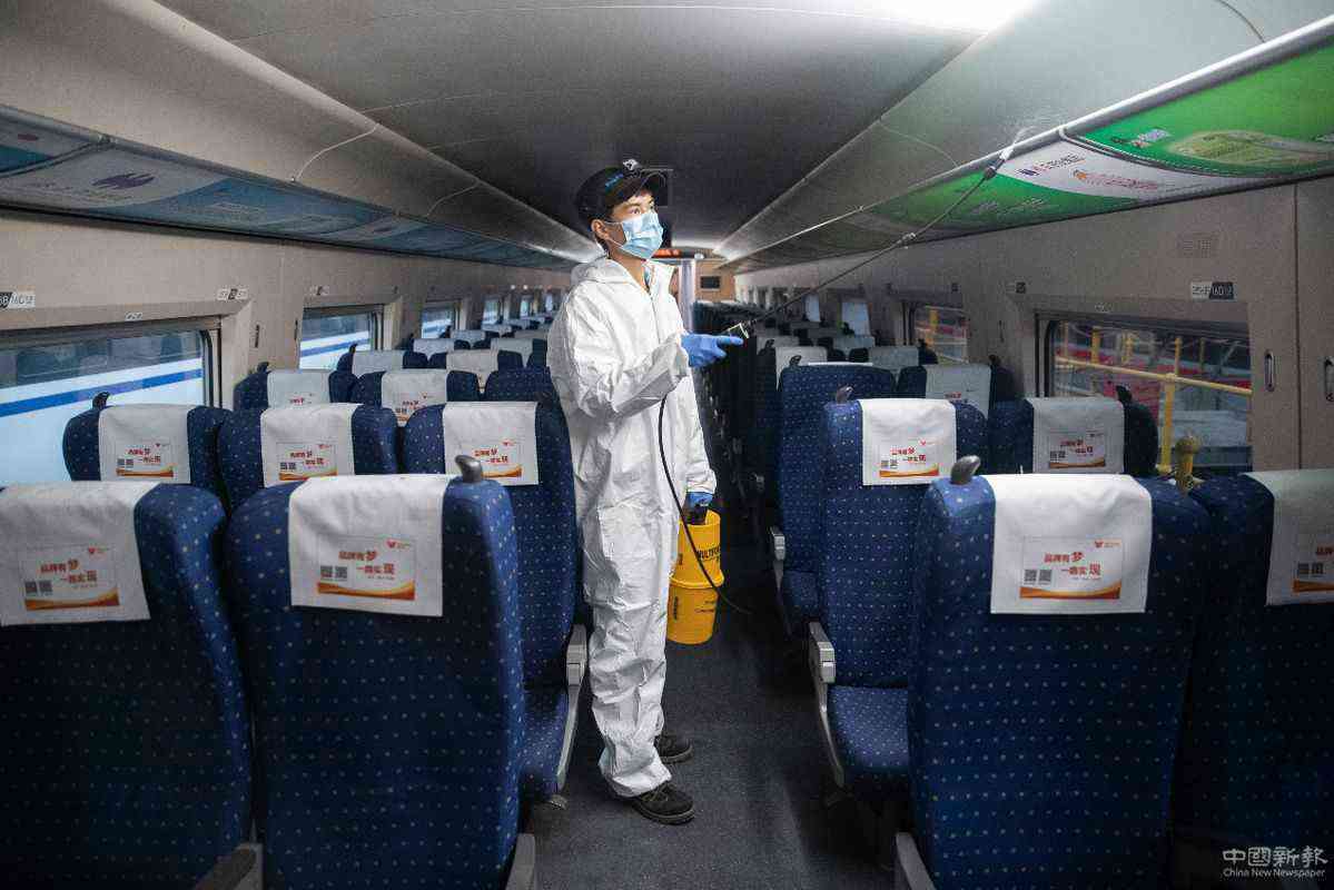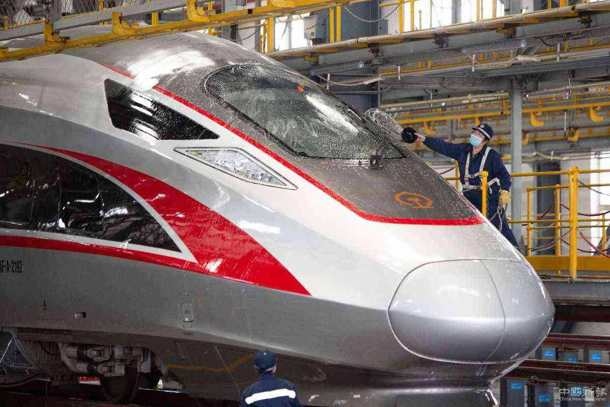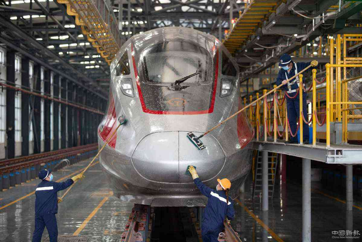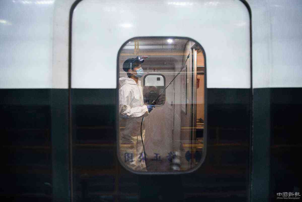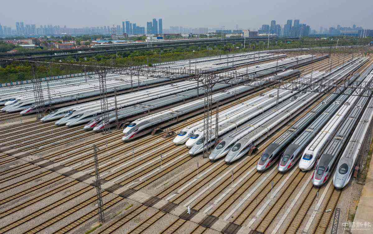 4月7日,武漢動(dòng)車段高鐵動(dòng)車組整裝待發(fā)。武漢市將于4月8日起解除離漢離鄂通道管控措施。武漢鐵路相關(guān)工作人員連日來(lái)忙碌在工作崗位上,為4月8日列車開(kāi)行做準(zhǔn)備??吗?for china daily