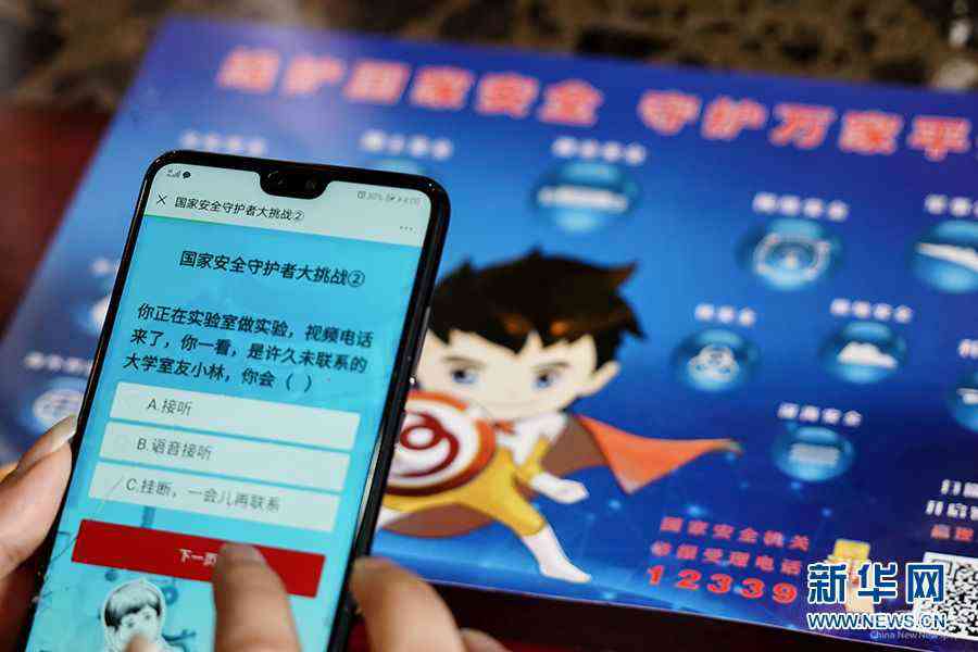 這一游戲程序把“國家安全進網(wǎng)絡”和“國家安全進課堂”相結(jié)合,測試內(nèi)容集知識性和趣味性于一體,把國家安全大政方針與人民群眾生產(chǎn)生活可能遇見的風險情況有機結(jié)合,以號召廣大人民群眾積極參與到國家安全中來,把國家安全群眾性教育落實落地。新華網(wǎng) 韓夢霖 攝