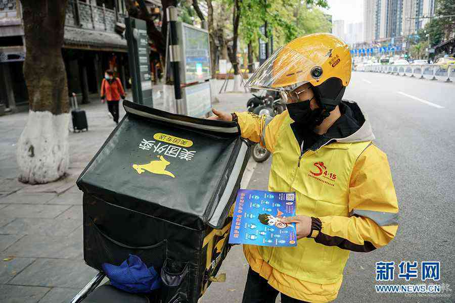 到達送餐的小區(qū)后,王淞迅速跟對方取得聯(lián)系,上門進行配送。據(jù)沙坪壩區(qū)委政法委相關負責人介紹,通過快遞和外賣配送業(yè)務來發(fā)送宣傳制品,是為了讓宣傳教育活動由人員聚集到分散入戶,變集中宣傳為流動宣傳,同時不降低疫情期間群眾參與度。新華網(wǎng) 韓夢霖 攝