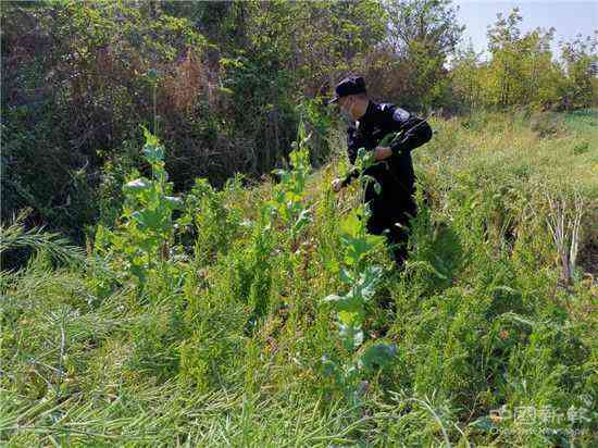 民警對(duì)發(fā)現(xiàn)的毒品原植物進(jìn)行強(qiáng)制鏟除