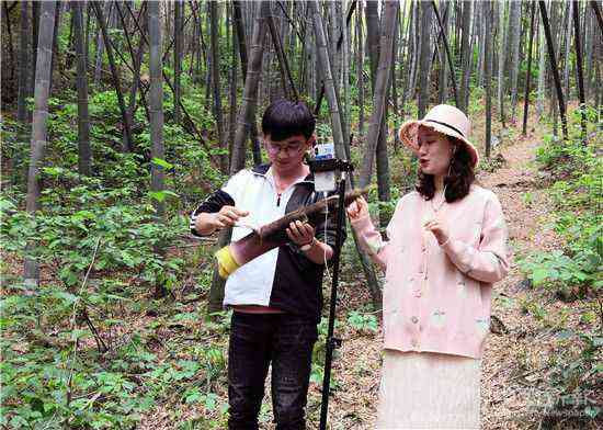 中國(guó)新報(bào)(特約記者 巢志斌 梁如 攝影報(bào)道)2020年4月25日,安徽省合肥市廬江縣湯池鎮(zhèn)果樹村,鎮(zhèn)政府工作人員洪洋(右)正在直播如何挖筍,推介當(dāng)?shù)靥厣截浘G色春筍。