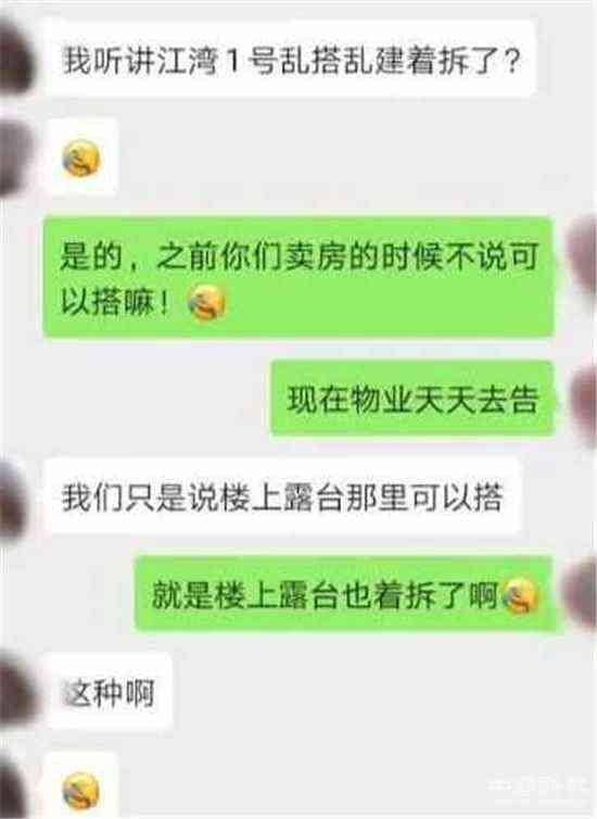 置業(yè)顧問:我聽講江灣1號亂搭亂建著拆了?