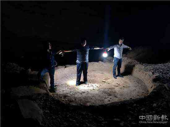 “哨兵瞭望臺”后邊洞內(nèi),幾個直徑2米至4米不等的數(shù)個土坑呈一字形排列分布。“這些土坑估計就是白蓮教徒冶煉熬制火硝的爐灶和沉淀池。”“冶煉爐灶分左右兩排排列,爐灶中間為冶煉工人采礦進(jìn)出行走的通道。”