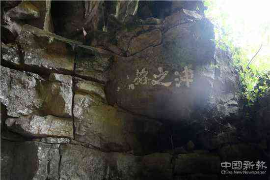 每個土坑一側(cè)便是形似冶煉用的爐灶,用石塊堆砌整齊的爐灶堂,燒火口、成品或半成品火硝池等非常清晰可見。一字排開的爐灶分布整齊有序,從洞內(nèi)處洞口呈大小分布排列有序。在哨兵瞭望臺左側(cè)約10余米處,兩個如大鐵鍋、疑似存放成品火硝痕跡非常明顯的土坑里不遠(yuǎn),與哨兵瞭望臺呈“一”字排列的巨石上,人工鑿成、疑似“軍工廠”地形圖的圖案清晰可見。在“地形圖”左側(cè)山巖石壁上,書有“山王天子神位”字樣的兩個用白色石灰書寫的“神位”清晰可見。