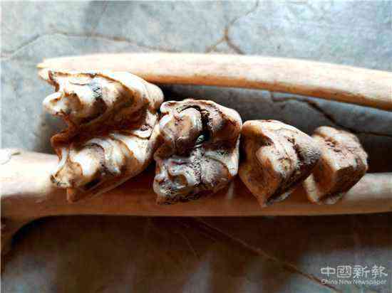 “我在‘魚兒洞’進(jìn)行娃娃魚仿真馴養(yǎng)時,工人曾在河邊山體泥土中挖出幾顆疑似黑熊牙齒的動物古化石。”陳大亞拿出動物牙齒化石介紹說。