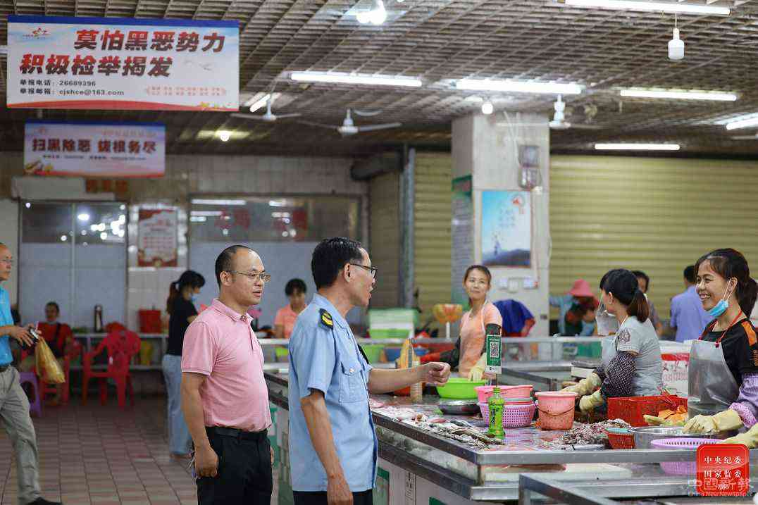 近日,昌江縣紀(jì)委監(jiān)委聯(lián)合縣市場(chǎng)監(jiān)督管理局對(duì)曾經(jīng)被黃鴻發(fā)集團(tuán)長(zhǎng)期把持的縣中心農(nóng)貿(mào)市場(chǎng)進(jìn)行走訪調(diào)研,向經(jīng)營(yíng)戶了解黃鴻發(fā)黑社會(huì)性質(zhì)組織被成功打掉后農(nóng)貿(mào)市場(chǎng)整體環(huán)境的變化。文承彬 攝