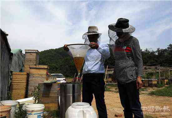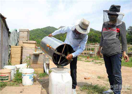 中國新報(特約記者 巢志斌 顏紅 攝影報道)2020年5月16日,安徽省合肥市廬江縣西南最高峰——黃山寨山腳下,養(yǎng)蜂人陳明友正和妻子張金保一起在收割蜂蜜。