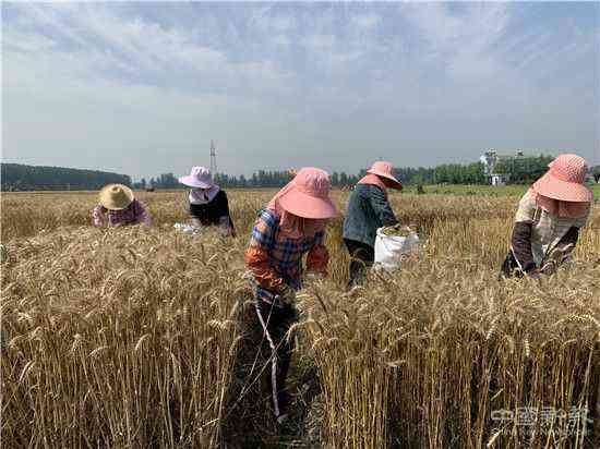 中國新報(特約記者 巢志斌  王德好  攝影報道)2020年5月23日,員工在小麥種子試驗田里進行人工收割小麥。