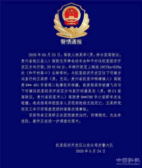 中國(guó)新報(bào)貴州訊(記者 羅茜 劉鵬飛)今天(5月24日)上午,貴州凱里經(jīng)濟(jì)開(kāi)發(fā)區(qū)交警大隊(duì)發(fā)布警情通報(bào),就發(fā)生在5月23日的一起交通事故進(jìn)行通報(bào)。
