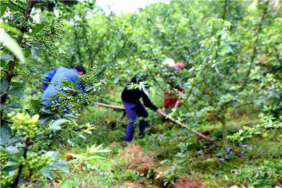 (圖為貧困戶們在花椒樹鋤草)