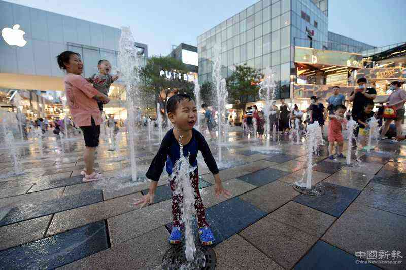 6月7日,北京三里屯,小朋友們在音樂噴泉中玩耍。(中國日報(bào)記者 魏曉昊 攝)