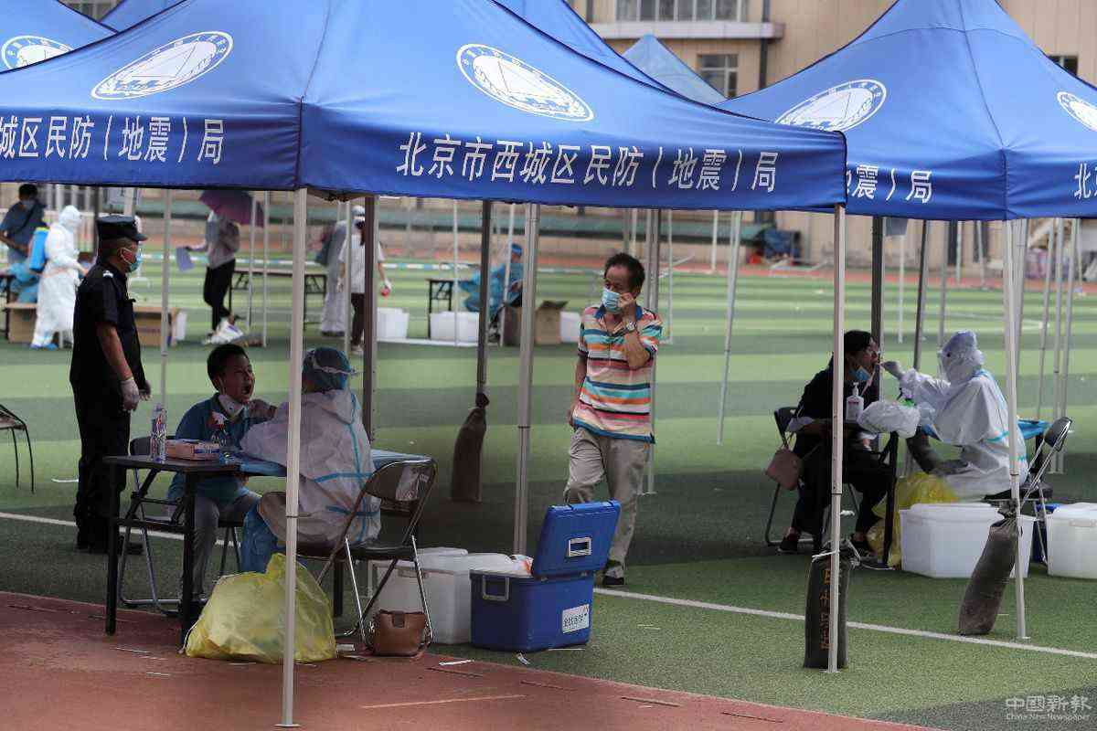 6月15日,北京市西城區(qū)廣安體育館內(nèi),市民接受核酸檢測采樣。(中國日報記者 王敬 攝)