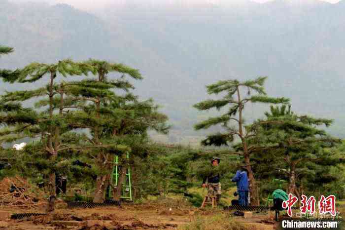 中新網(wǎng)寧夏涇源6月17日電 (李佩珊 惠六七)在寧夏西吉將臺堡三軍會師紀(jì)念館門前,有一株針葉油松,造型奇特,備受游客青睞。提起這株造型景松,不得不說距將臺堡77.6公里的涇源縣新民鄉(xiāng)先鋒村,正是這個坐落在大雪山北麓只有141戶565人的小村莊,成就了它從普通油松到造型景松的華麗大轉(zhuǎn)身,也讓普通的松樹成為了群眾致富路上的“金錢樹”。