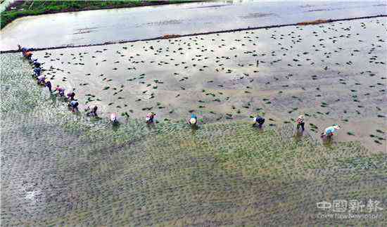 中國(guó)新報(bào)(特約記者 巢志斌 通訊員 吳建中 攝影報(bào)道)2020年6月23日,安徽省合肥市廬江縣同大鎮(zhèn)孔靜心谷物種植家庭農(nóng)場(chǎng)正在組織農(nóng)民開展人工栽插小紅稻秧苗。栽秧的農(nóng)民群眾用自己的身體與碧綠的秧苗為筆,在仲夏季的藍(lán)天白云下,畫出了一幅大地夏種圖。