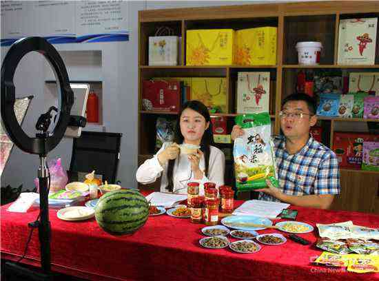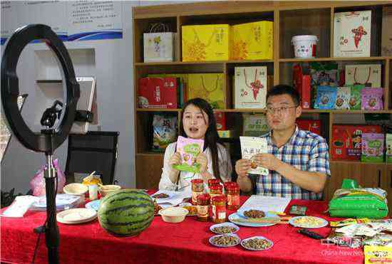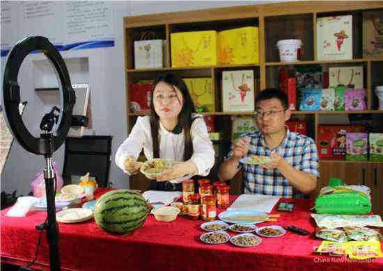 中國新報(bào)(特約記者 巢志斌  攝影報(bào)道)2020年6月29日晚間,安徽省合肥市廬江縣石頭鎮(zhèn)笏山村黨委書記助理、團(tuán)支部書記張雨晗(左一)和村黨委第一書記柯鵬飛聯(lián)袂出鏡,為本村貧困戶農(nóng)特產(chǎn)品進(jìn)行網(wǎng)絡(luò)直播帶貨。