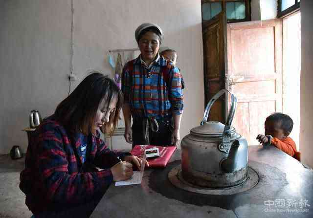 4月18日,對口幫扶威寧縣龍場鎮(zhèn)尖山村的該縣扶貧辦副主任唐勇查看扶貧情況。新華社記者駱飛 攝