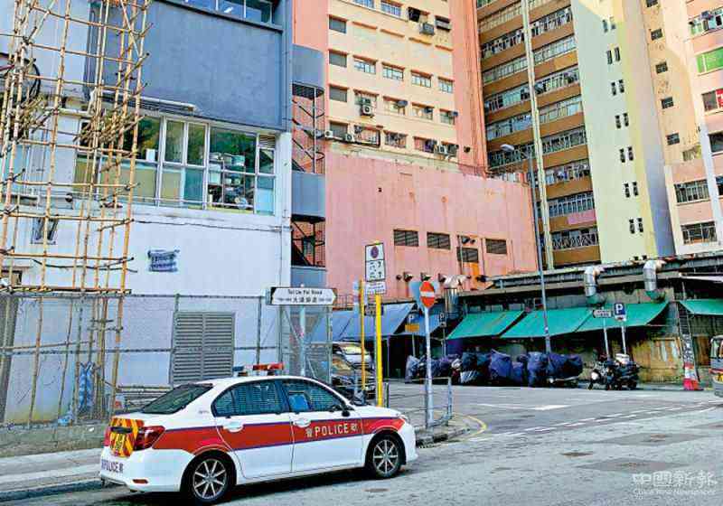 圖:網(wǎng)上有人煽惑他人破壞甚至偷取衛(wèi)生署存放在工廈貨倉的口罩,警方在工廈附近加強巡邏\大公報突發(fā)組攝