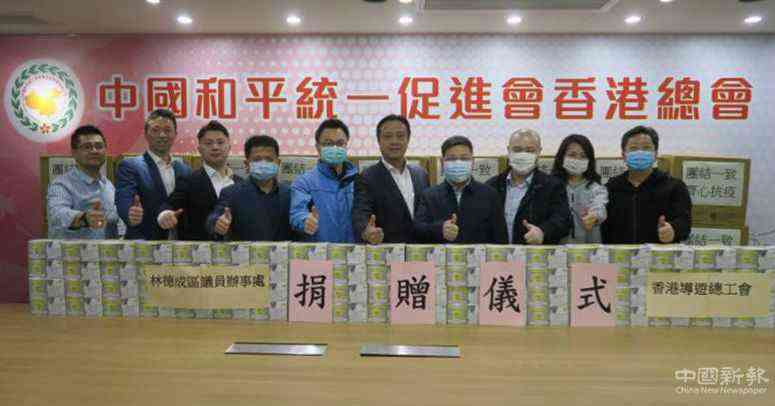 圖:中國(guó)和平統(tǒng)一促進(jìn)會(huì)香港總會(huì)向本港社會(huì)各界捐贈(zèng)四十萬(wàn)個(gè)口罩