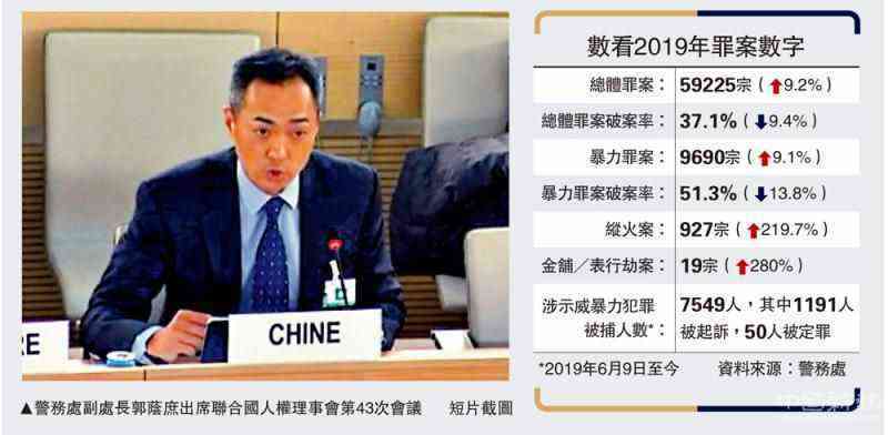 警務處副處長郭蔭庶在聯(lián)合國人權(quán)理事會第43次會議上發(fā)言時表示,過去八個月至今,暴徒用所謂的“民主旗幟”挾持了整個香港,是香港警察站在這群用極端暴力勒索訴求的暴徒前面,用身軀在社區(qū)最前線止暴制亂。他譴責背后助紂為虐的支持者們“向部分西方國家搖尾乞憐”,美其名曰為“爭取民主”,事實上只是從事違法活動的卑鄙行徑。郭蔭庶指出,所謂的“警察暴力”經(jīng)常成為別有用心的人用來丑化警察形象的一個強而有力的武器,但相信“是非自有曲直,公道自在人心”。\大公報記者 龔學鳴