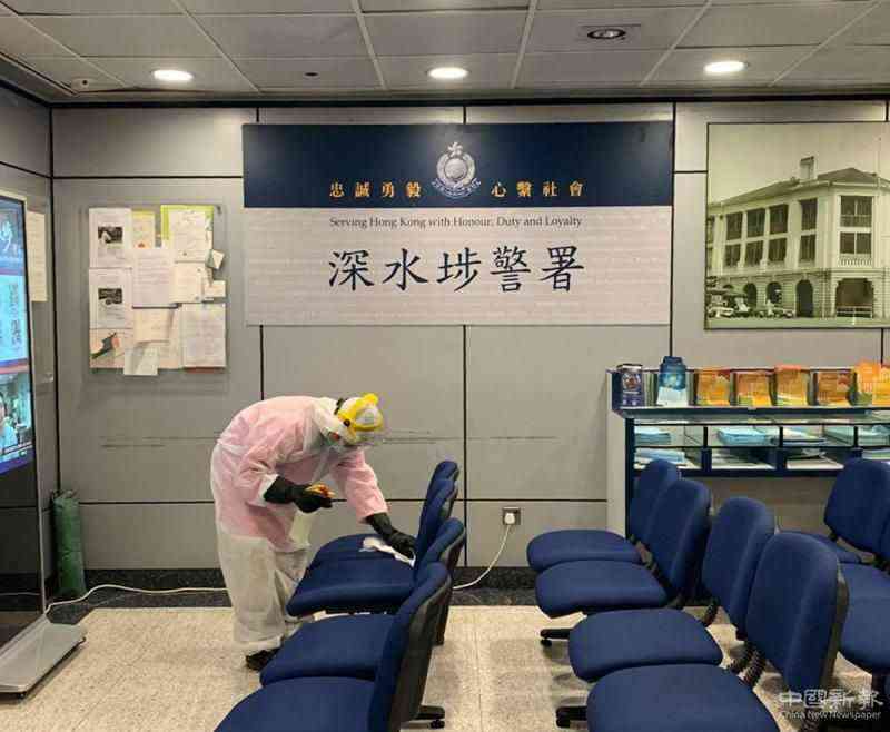 圖:警方安排工作人員在深水埗警署作徹底清潔及消毒,包括報案室和警車等\網(wǎng)上圖片