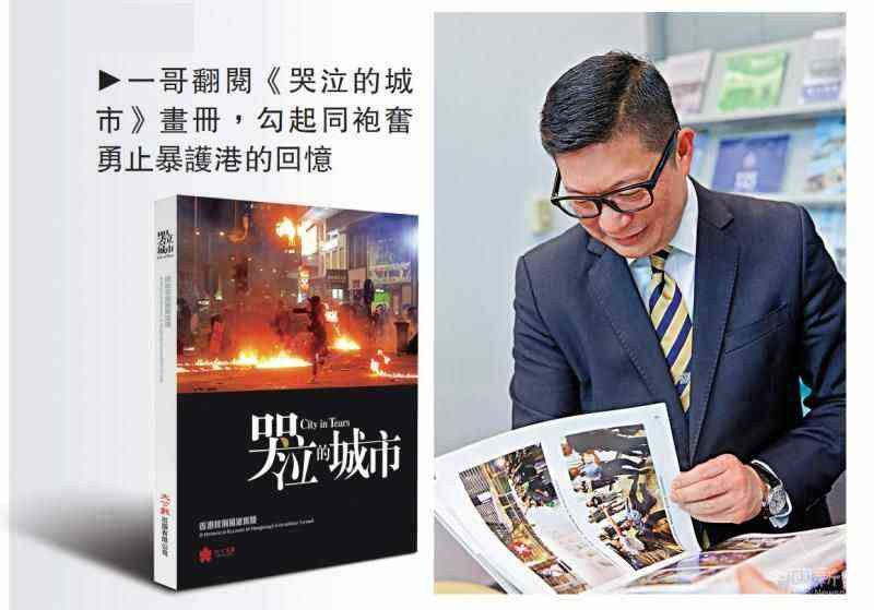 “維護(hù)法治,信念堅(jiān)定!保護(hù)市民,何懼黑暴!正義在我,堅(jiān)守崗位!”大公文匯集團(tuán)出版的畫冊《哭泣的城市》,當(dāng)中的“勇”字篇,用鏡頭及文字記錄了三萬名忠誠警察堅(jiān)守在止暴制亂第一線的實(shí)況。訪問完成后,大公報(bào)記者將畫冊送給一哥,他馬上翻揭細(xì)讀。
