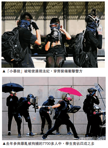 根據(jù)警方公布最新數(shù)字,參與暴亂被拘捕的7700多人中,學(xué)生占了四成,而18歲以下的被捕學(xué)生一直上升,去年暴亂初期只占整體的6%,今年一月升至26%。年輕人守法意識(shí)薄弱,與反對(duì)派長期鼓動(dòng)“違法達(dá)義”有關(guān),他們胡說“入獄達(dá)義”、“留案底令人生變得更精彩”、“暴力有時(shí)或可解決問題”歪理,唆使年輕人漠視法紀(jì),沖擊警方。