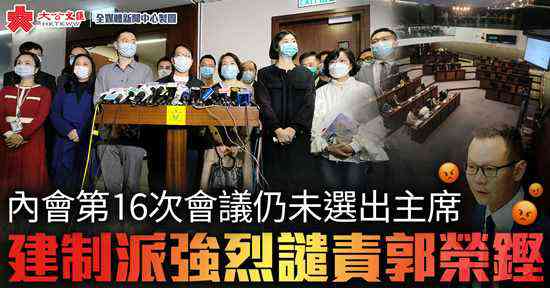 大公文匯全媒體報(bào)道:香港立法會(huì)內(nèi)會(huì)今日下午(24日)舉行第16次會(huì)議,仍未能選出正副主席,建制派議員會(huì)后表示非常憤怒和不滿,強(qiáng)烈譴責(zé)郭榮鏗。