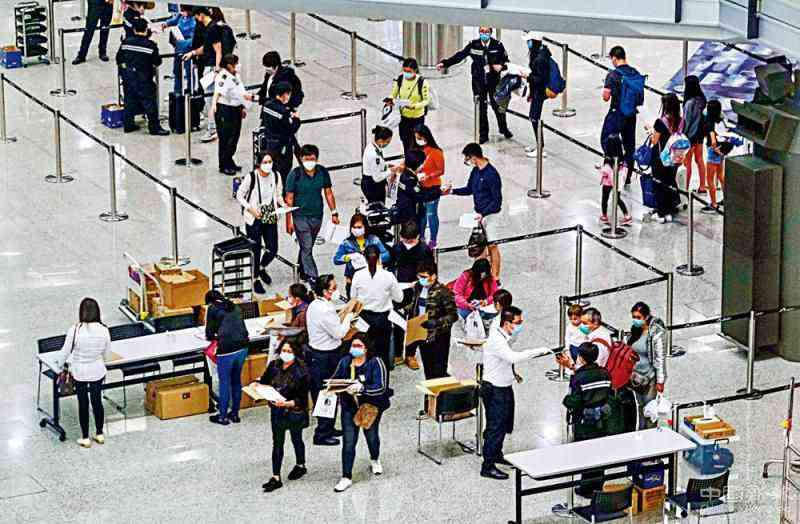 圖:當(dāng)疫區(qū)返港人員大批涌到時,機(jī)場成了防疫的第一道閘口