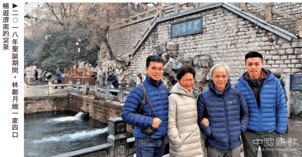 圖:二〇一八年圣誕期間,林鄭月娥一家四口暢游濟南趵突泉