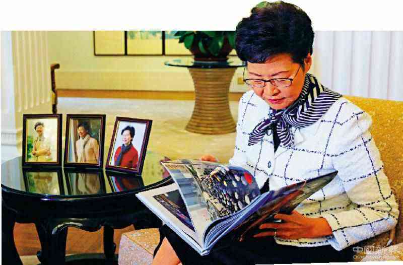 特首林鄭月娥接受大公報專訪時,身旁的小桌上,三張用精致相框裝裱的照片并排放著,分別是她擔(dān)任發(fā)展局局長、政務(wù)司司長以及競選特首時,接受大公報專訪時的留影。