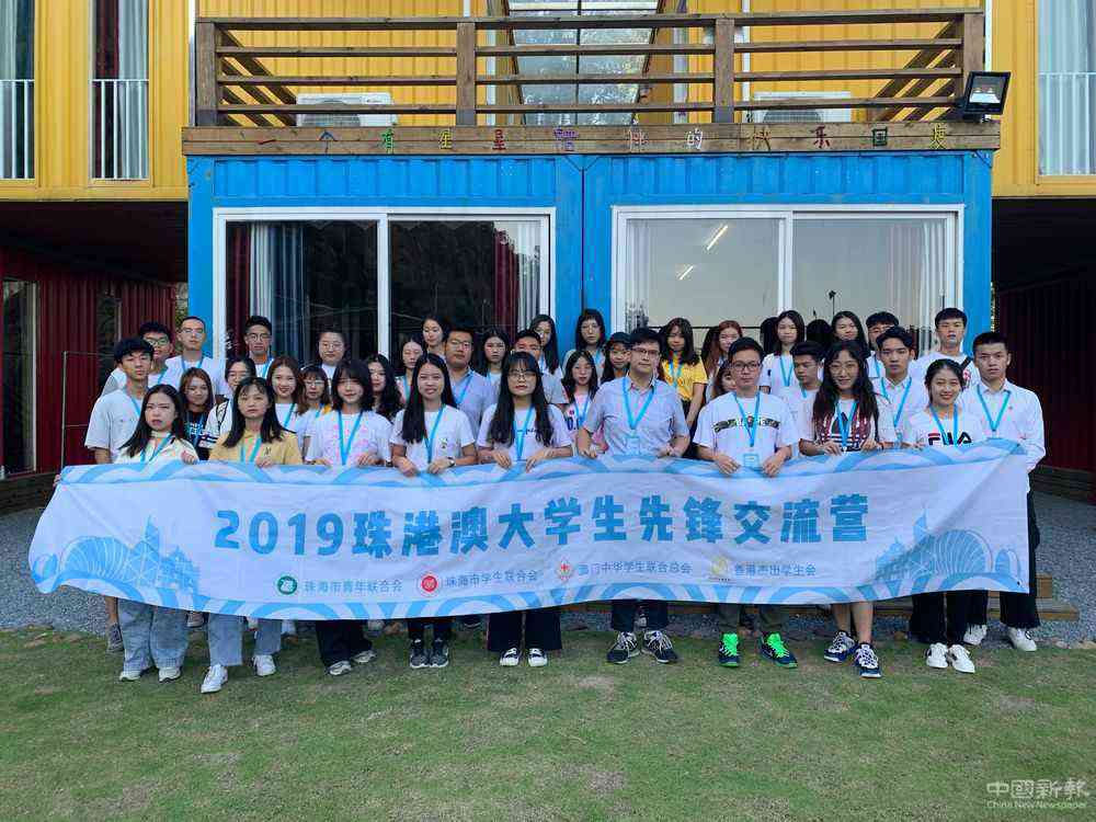 2019年9月麥成灝(前排右四)帶領(lǐng)香港杰出學(xué)生會(huì)與珠海學(xué)聯(lián)及澳門學(xué)聯(lián)合辦2019珠港澳大學(xué)生先鋒交流營。(圖片由受訪者提供)
