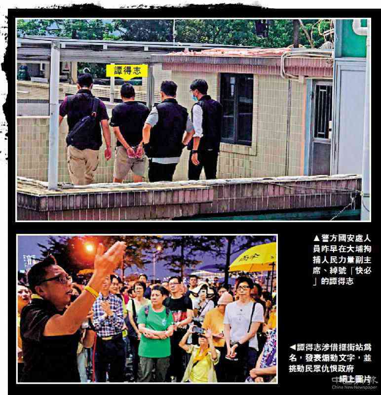 再有攬炒派政棍被警方國安處人員拘捕!警方國安處人員昨日拘捕人民力量副主席、綽號“快必”的譚得志,指他在過去三個(gè)月“限聚令”實(shí)施期間舉行29次街站,并透過網(wǎng)上平臺直播,巧立名目稱是“防疫講座”,發(fā)表引起憎恨及藐視政府的言論,部分字眼同時(shí)引起民間之間的不滿。警方以“發(fā)表煽動文字”罪將譚拘捕。
