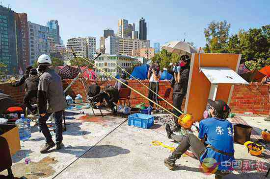 ■理大拒絕理大學生會在校內舉行所謂“紀錄片放映會”。圖為去年底一批暴徒于理大校園內用巨型彈叉射火彈。 資料圖片