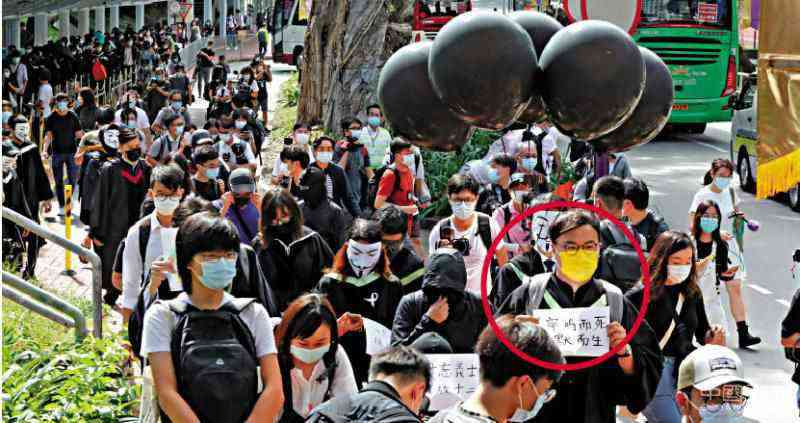 因應疫情,中大畢業(yè)禮昨起一連三日通過網上進行,中大早前已宣布有關安排,但有人在網上發(fā)動游行。昨日中午,近百名參與游行者由港鐵站外游行至百萬大道,有人身穿畢業(yè)袍,頭戴V煞面具,有人舉著“一息尚存 抗爭到底”等標語,又叫喊“光復香港 時代革命”、“香港獨立 唯一出路”等宣“獨”口號。觀塘區(qū)議員兼中大畢業(yè)生陳易舜亦在游行隊伍中。校方保安多次阻止未果,更有學生嘗試在地上涂鴉,儼如街頭暴亂的翻版。