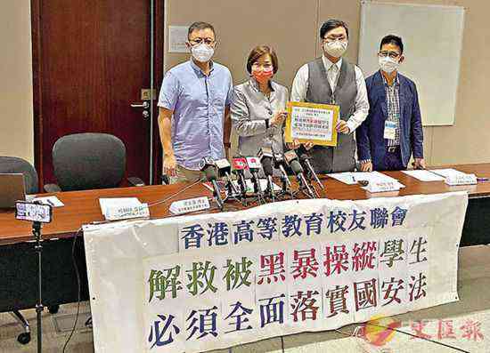 ■香港高等教育校友聯(lián)會(huì)昨聯(lián)同多個(gè)教育團(tuán)體召開記者會(huì),要求政府和大學(xué)全面落實(shí)香港國(guó)安法。 香港文匯報(bào)記者 攝
