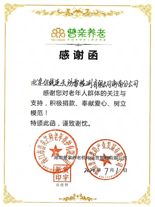北京儀線連天防雷檢測有限公司海南分公司特別策劃組織了這次對海南普親養(yǎng)老院慰問活動,同時開展“防雷知識”講座,并進(jìn)行防雷安全隱患排查,用專業(yè)安全技能與知識為這些老人送去一份安全保障。通過這次活動,消除了普親養(yǎng)老院人員的麻痹思想和僥幸心理,將雷電災(zāi)害造成的損失降低到最小。