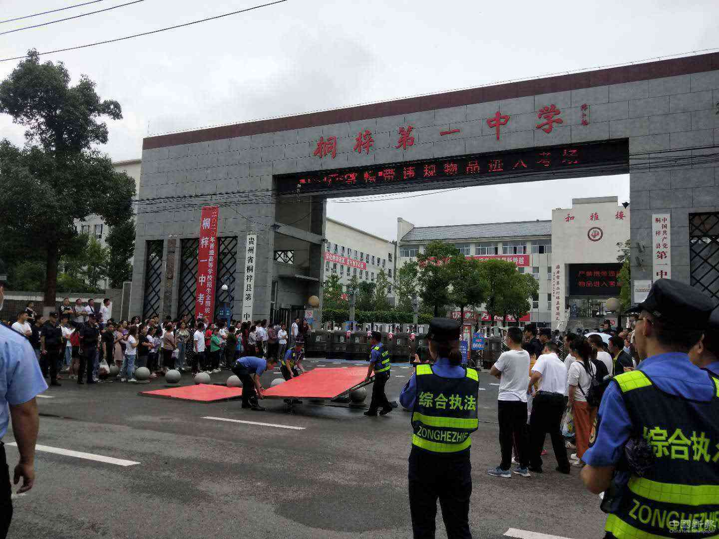 中國新報(bào)訊(通訊員 謝澤龍 胡順翔 楊鑑)“十年寒窗磨一劍,今朝出鞘試鋒芒”!備受關(guān)注的2020年全國高考于7月7日開考,貴州桐梓縣考區(qū)共設(shè)3個(gè)考點(diǎn),164間考場(chǎng),4883名考生。對(duì)于貴州桐梓的考生來說今年高考更是非同尋常,昨晚開始大雨就一直下個(gè)不停。為給考生提供一個(gè)安心無憂的考試環(huán)境,桐梓縣婁山紅文明城市提檔升級(jí)志愿服務(wù)隊(duì)多舉措服務(wù)高考,助力莘莘學(xué)子圓夢(mèng)高考、揚(yáng)帆遠(yuǎn)航!