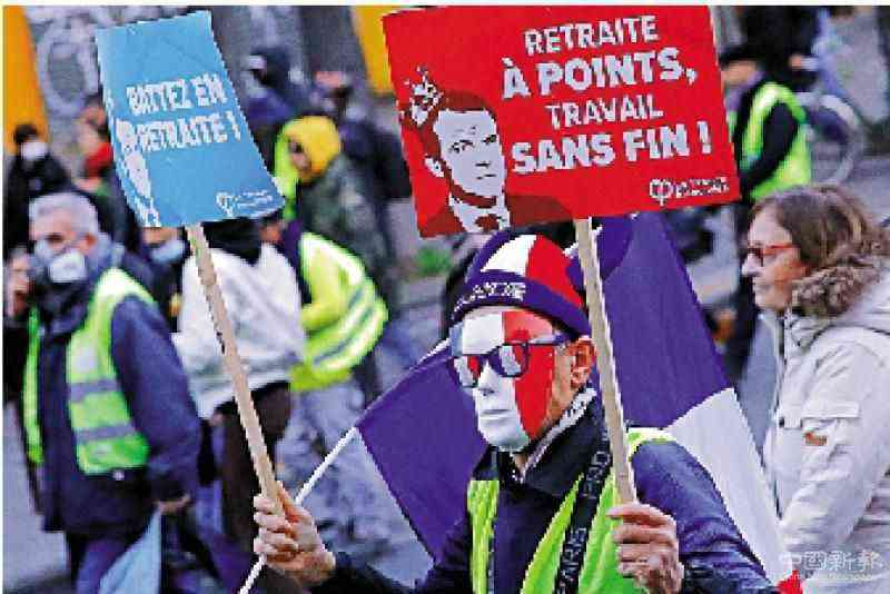 圖:抗議退休改革的示威者11日走上巴黎街頭\美聯(lián)社