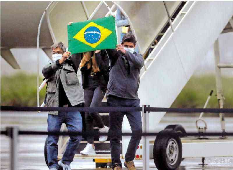 圖:從武漢撤回的巴西僑民9日抵達巴西阿納波利斯\美聯(lián)社