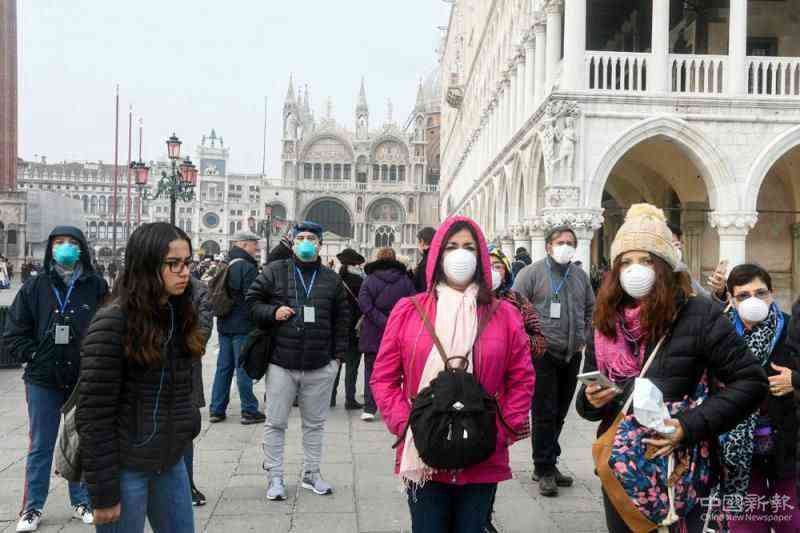圖:25日在威尼斯觀光的游客大都戴上了口罩\法新社