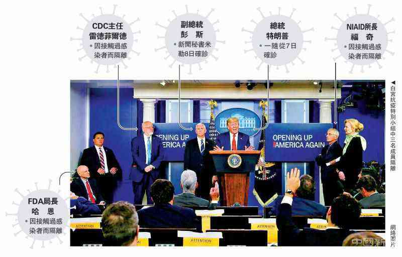 圖:白宮抗疫特別小組中三名成員隔離\網(wǎng)絡(luò)圖片