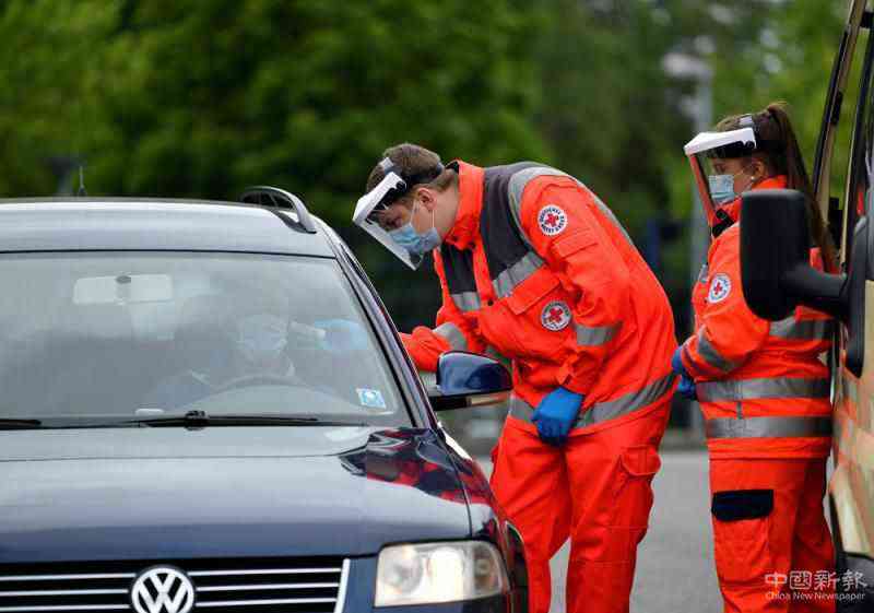 圖:德國(guó)醫(yī)護(hù)人員24日給來往人員測(cè)體溫/路透社