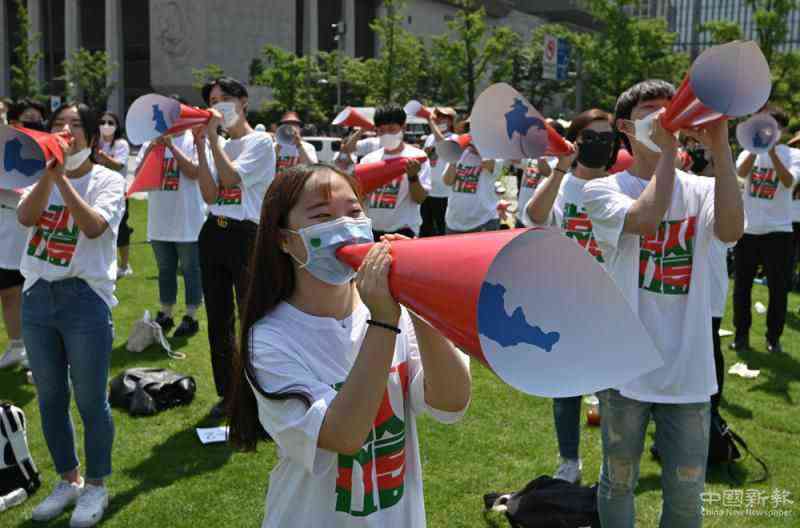 圖:近日朝韓局勢緊張,圖為韓國支持統(tǒng)一者13日在首爾舉行和平示威\法新社
