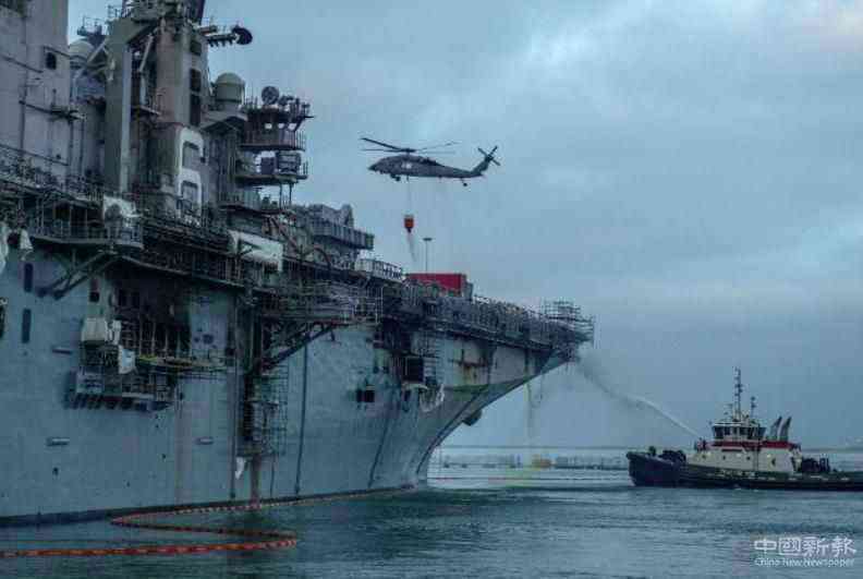 美"準(zhǔn)航母"燃燒2天致61傷 高官:未來24小時有望滅火