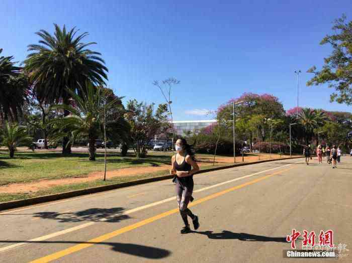 當(dāng)?shù)貢r(shí)間7月13日,在巴西圣保羅,一名女子在當(dāng)?shù)匾还珗@跑步鍛煉。當(dāng)日,巴西最大城市圣保羅市允許符合衛(wèi)生和防疫條件的公園在工作日恢復(fù)開放。 中新社記者 莫成雄 攝