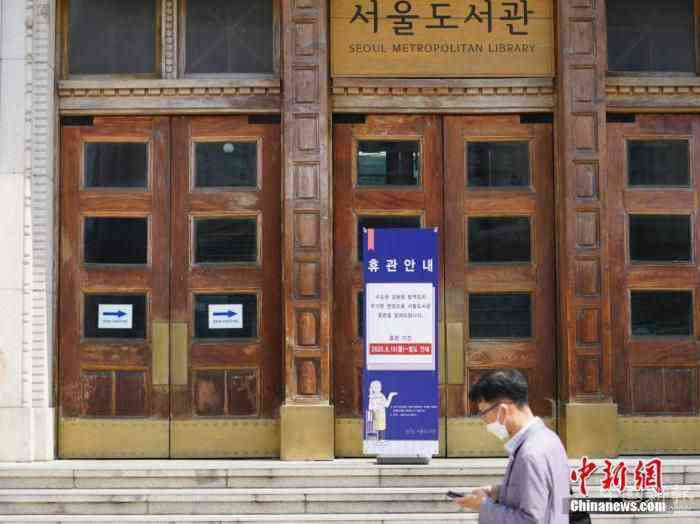 資料圖:一位韓國首爾市民經(jīng)過首爾市立圖書館門前。 中新社記者 曾鼐 攝