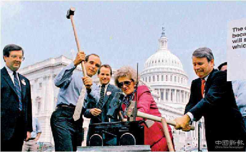 圖:美國(guó)議員1987年在國(guó)會(huì)山前砸東芝收音機(jī)\網(wǎng)絡(luò)圖片