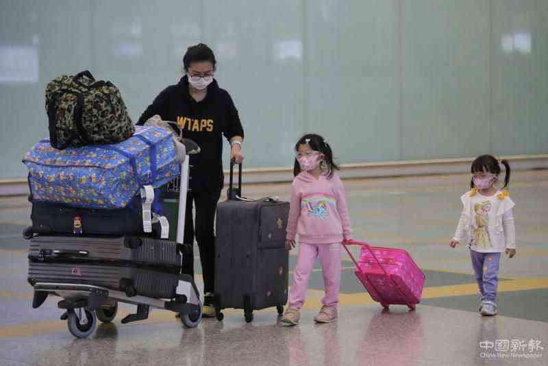 圖:一家人3月23日自香港機場入境\美聯(lián)社