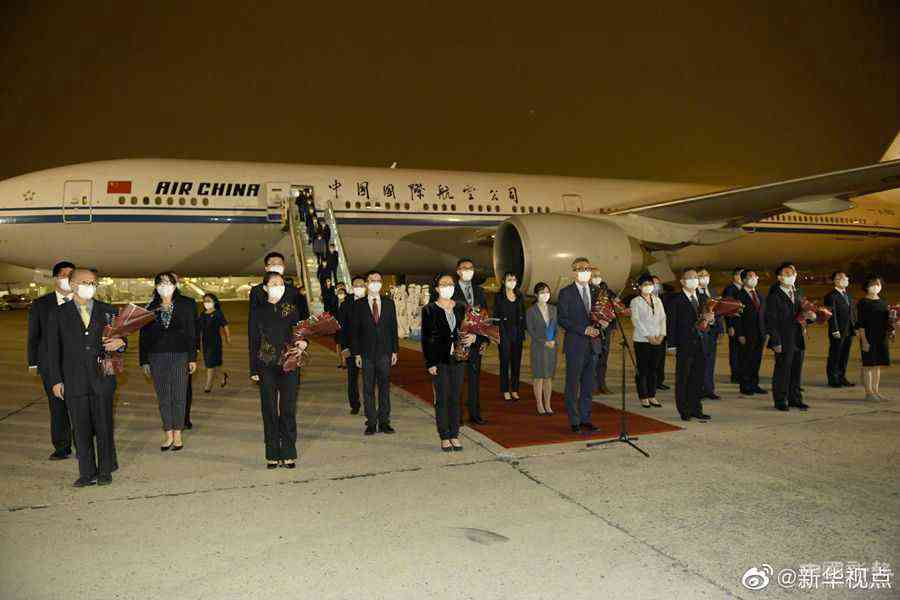 8月17日晚,中國(guó)駐休斯敦總領(lǐng)事館全體館員乘包機(jī)抵達(dá)北京,外交部在首都機(jī)場(chǎng)舉行簡(jiǎn)短莊重迎接儀式。(記者成欣、岳月偉) ????